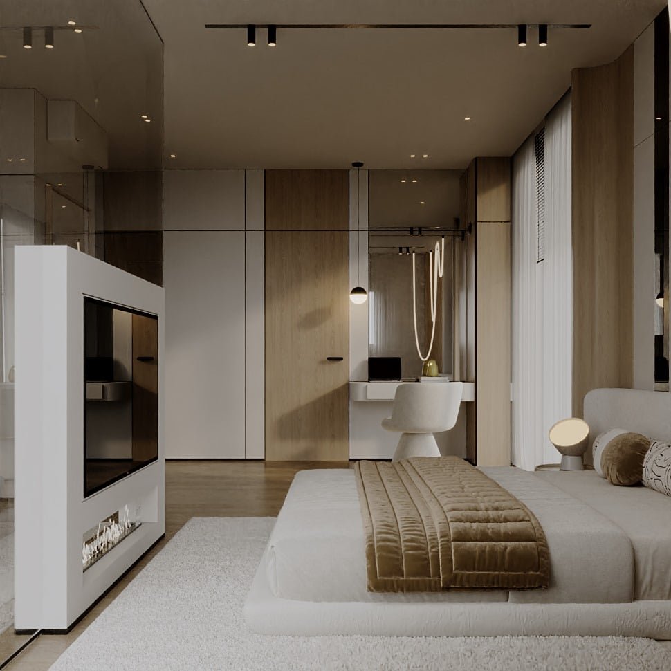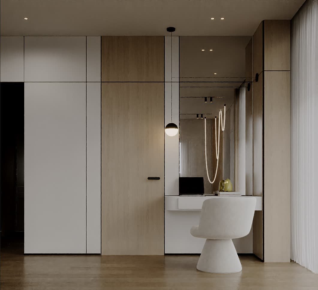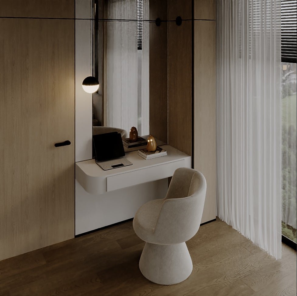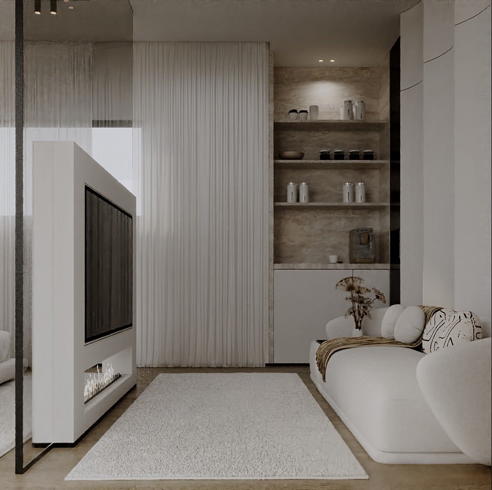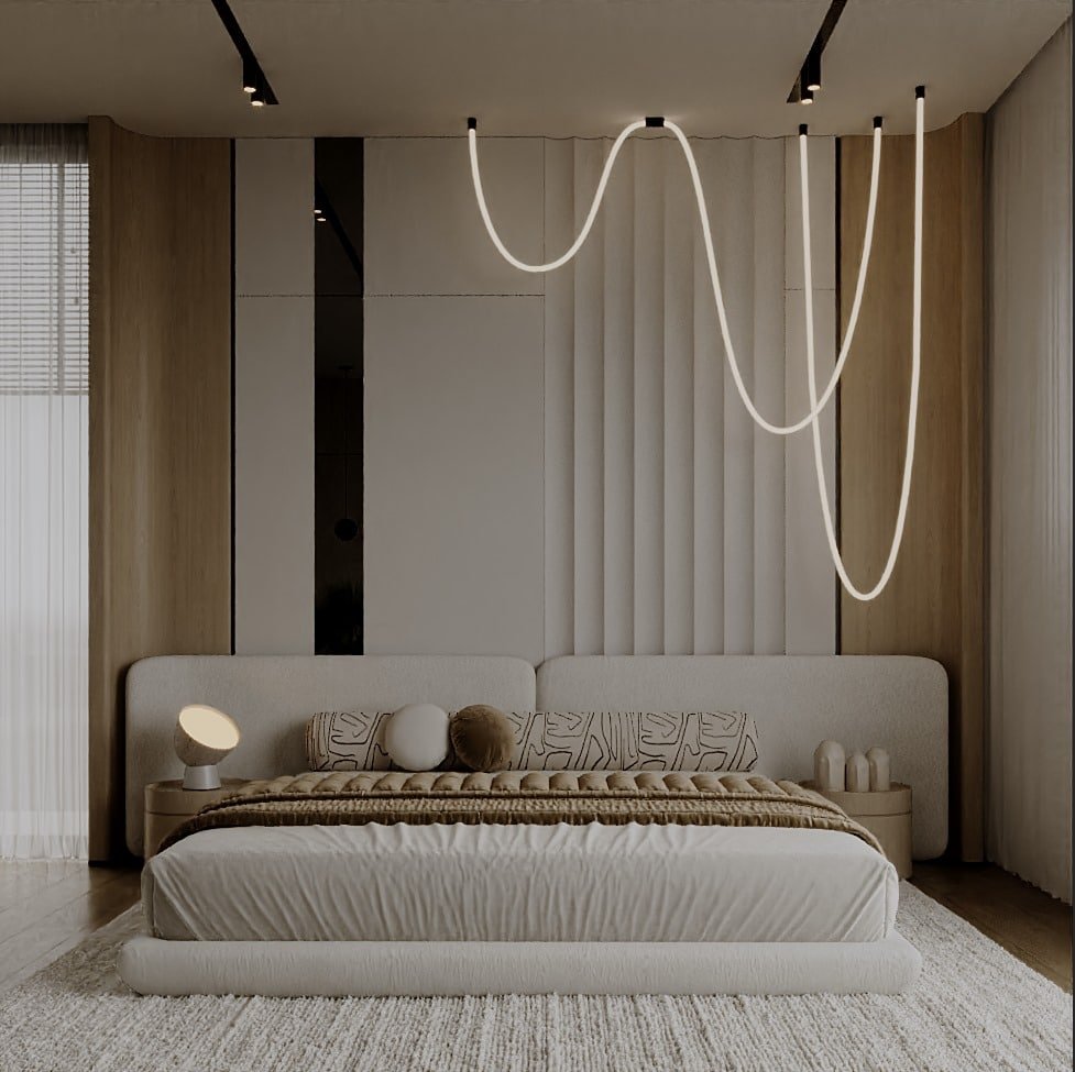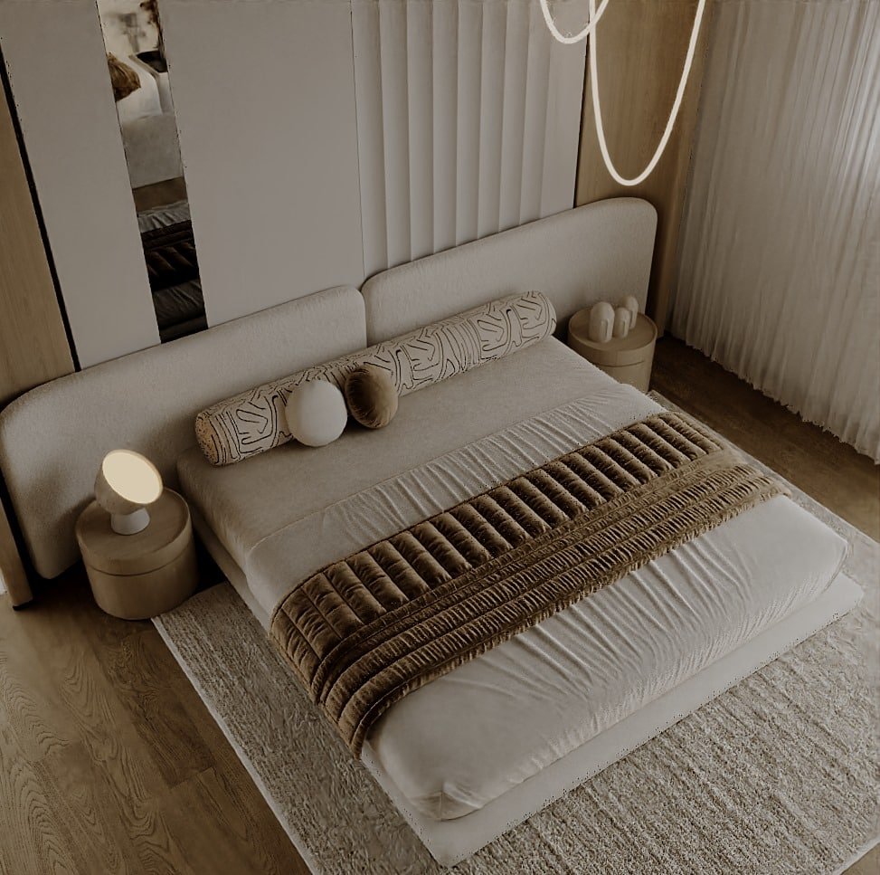 تم اختيار الأثاث بعناية بحيث يكون مريح بصريًا ووظيفيًا في نفس الوقت، مع اعتماد أشكال ناعمة ومنحنيات خفيفة بتكسر حدة الخطوط المستقيمة في المعمار. التفاصيل الديكورية جاية بشكل هادي ومدروس عشان تضيف فخامة بدون زحمة بصرية، وده بيخلي المشروع مناسب لأسلوب حياة راقي بيعتمد على الهدوء والبساطة الذكية مع الحفاظ على مستوى عالي من الجودة والتشطيب.