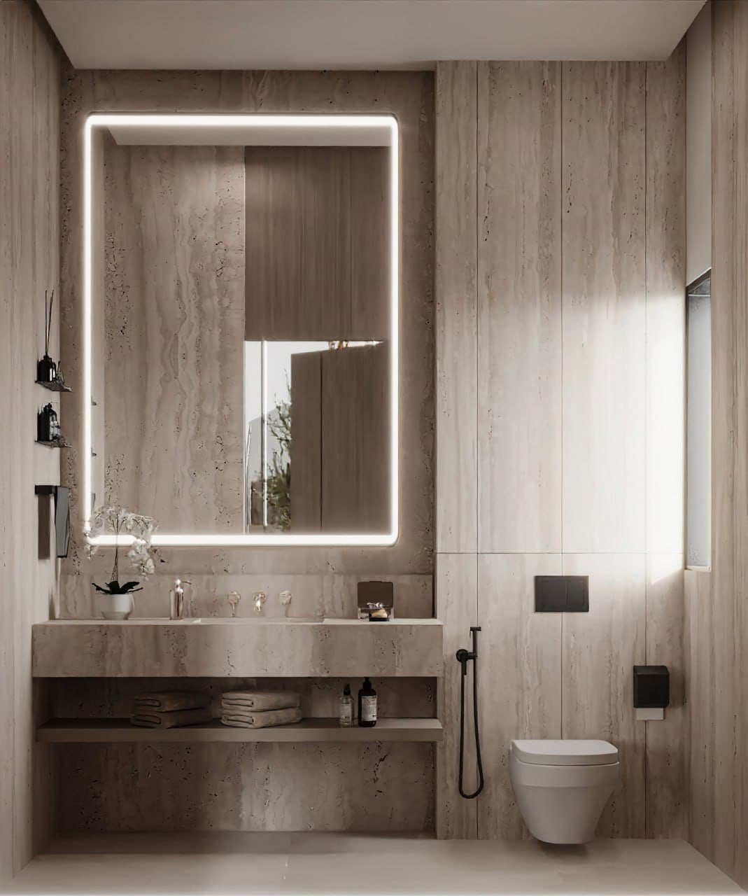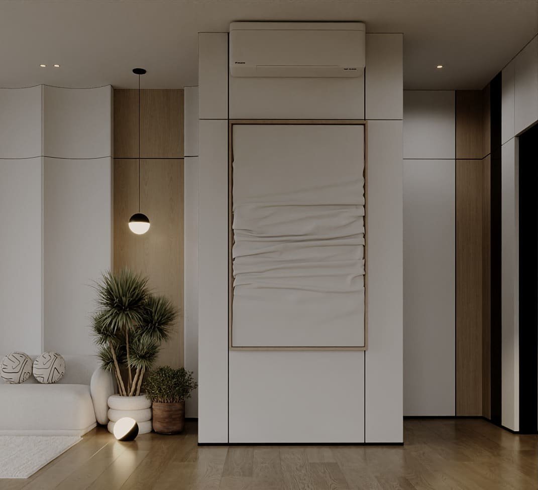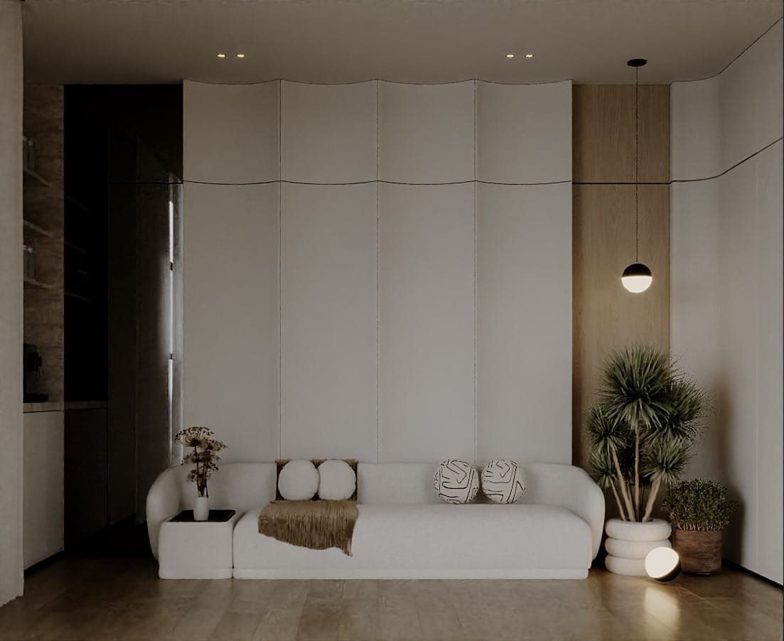 المشروع قائم على مفهوم السكن العصري الهادئ اللي بيجمع بين الفخامة العملية والراحة النفسية داخل الفراغات المعيشية. التصميم بيعتمد على خطوط نظيفة وخامات طبيعية واضحة زي الخشب، الرخام، والأقمشة الدافئة، مع استخدام ألوان نيوترال هادية زي البيج، الكريمي، والبني الفاتح لخلق إحساس بالاتزان والراحة البصرية.