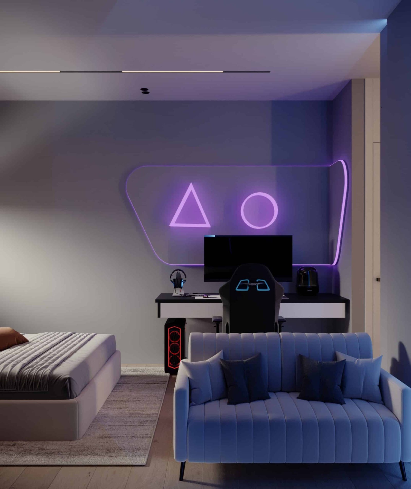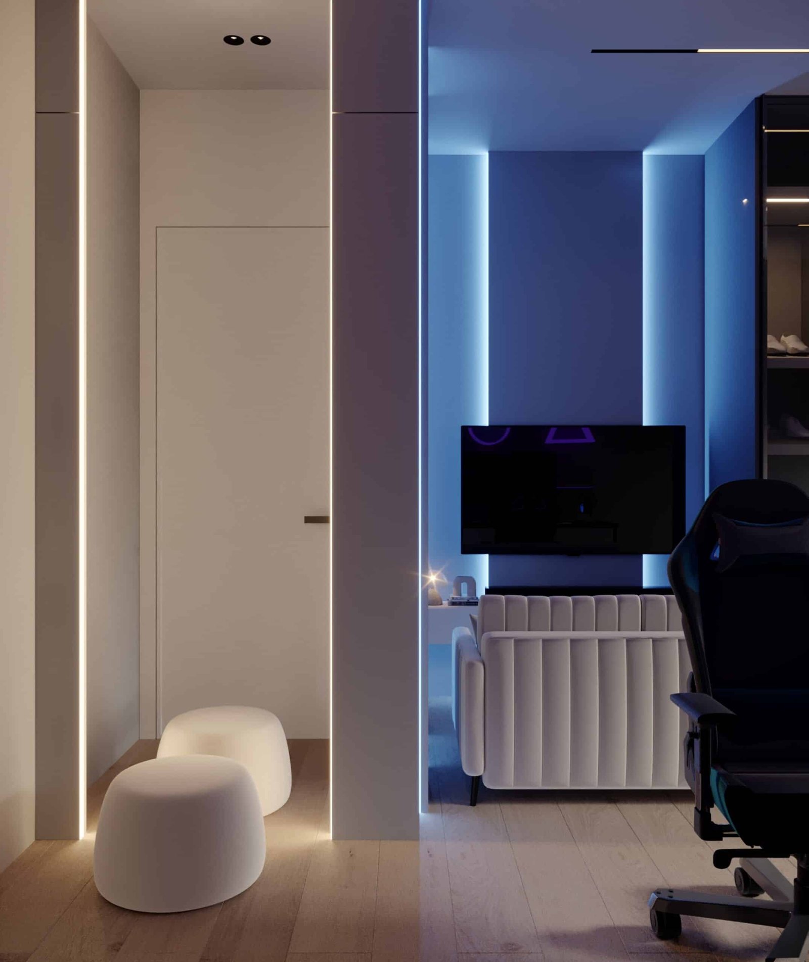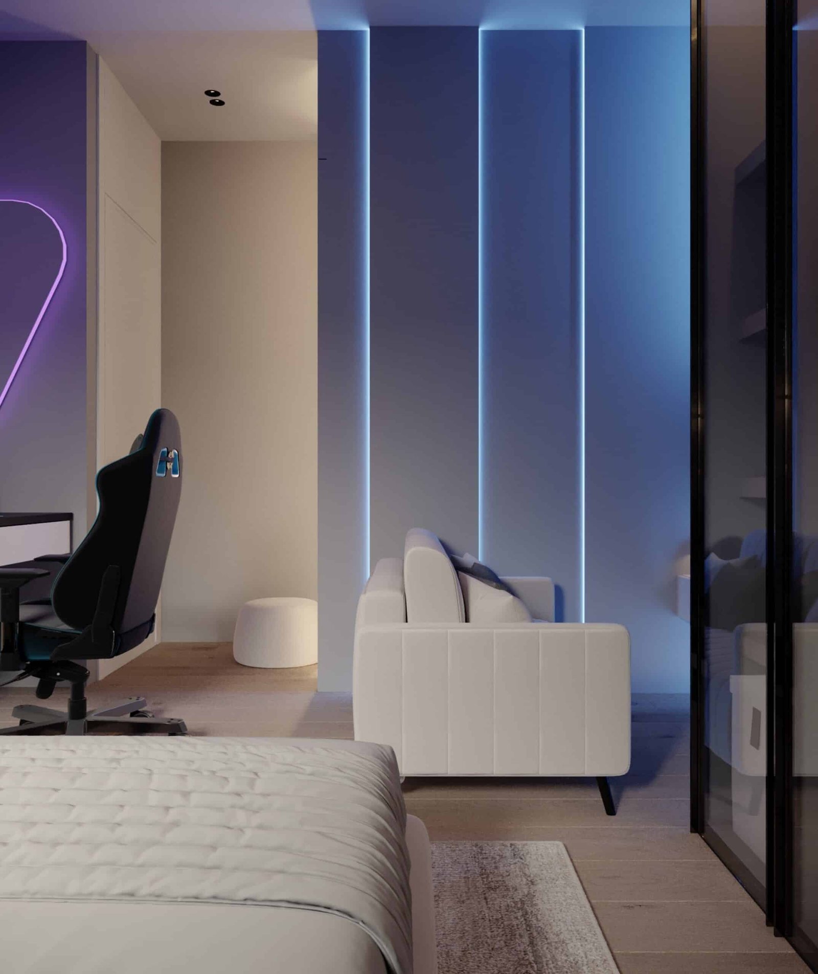 مشروع تصميم داخلي معاصر يعكس مفهوم الحياة الذكية الحديثة، حيث يجمع التصميم بين البساطة المعمارية المتقدمة والتكنولوجيا البصرية من خلال الاعتماد على الخطوط النظيفة، الإضاءة الخطية المخفية، وتكامل العناصر الذكية داخل الفراغ.